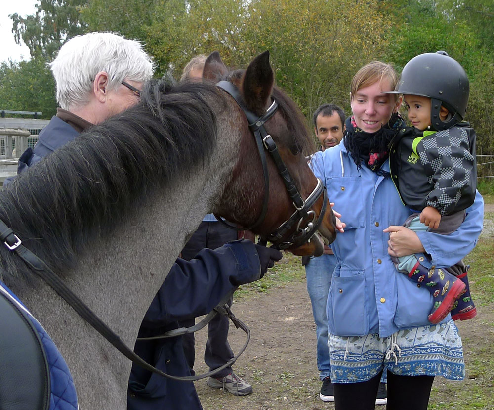 Krumeluren älskar hästar! Hela sommaren på landet har han sett till att grannens stora svarta vallack fått en daglig dos uppmärksamhet och tillika morot. Nu tjatar han om att han vill rida och har mycket att berätta om sina senaste ridturer. I går firade Upplands Bro Ryttarförening 25 år. Då passade vi såklart på att hälsa på.